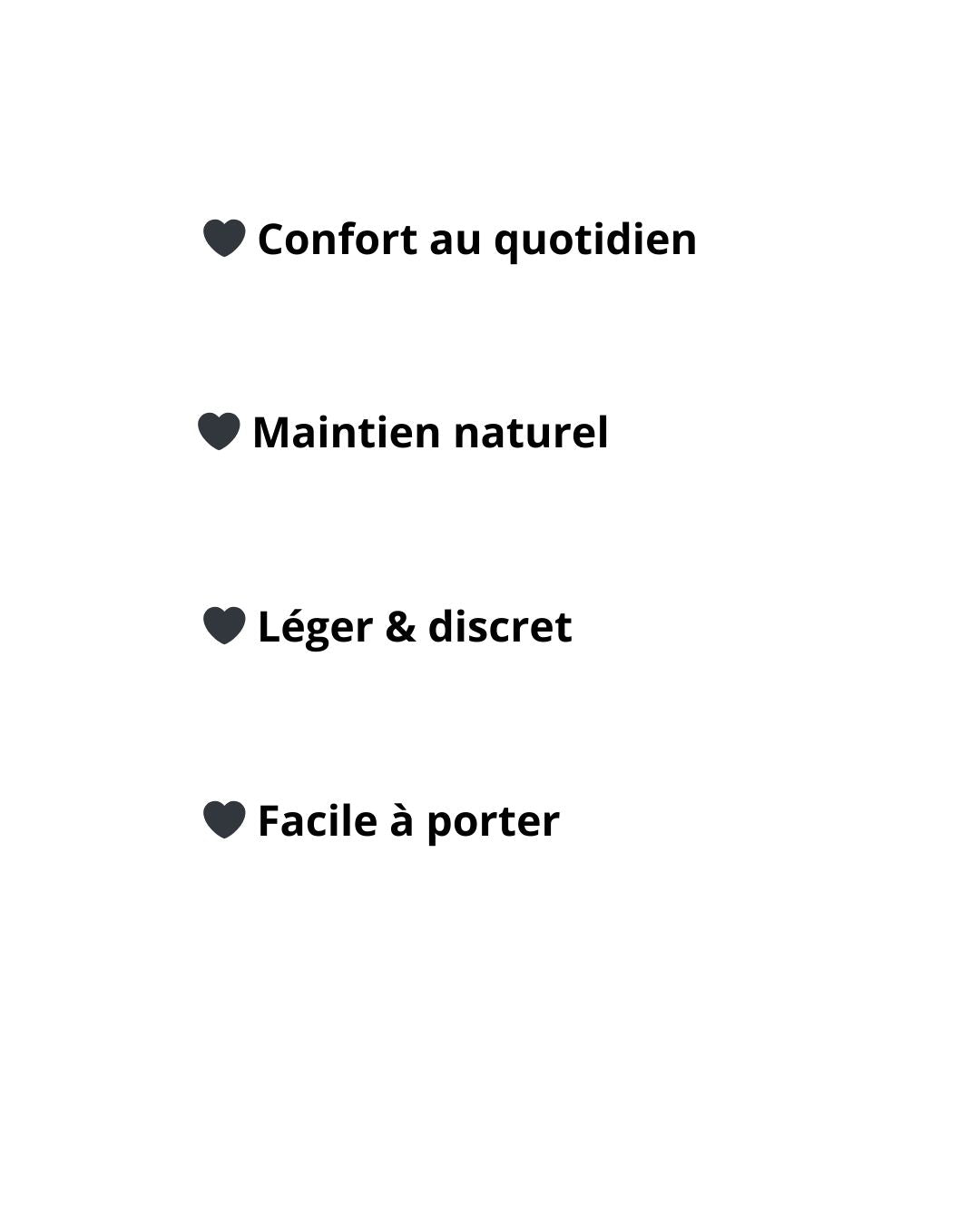 Conçu pour être porté facilement au quotidien, ce support de maintien offre une sensation de tenue naturelle, sans rigidité ni contrainte.